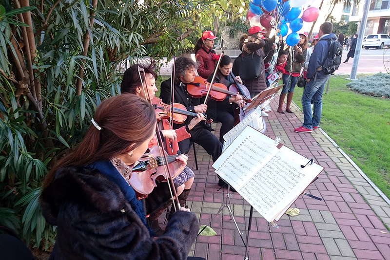 Во флешмобе, который прошёл в праздничной атмосфере, приняли участие несколько сотен человек.