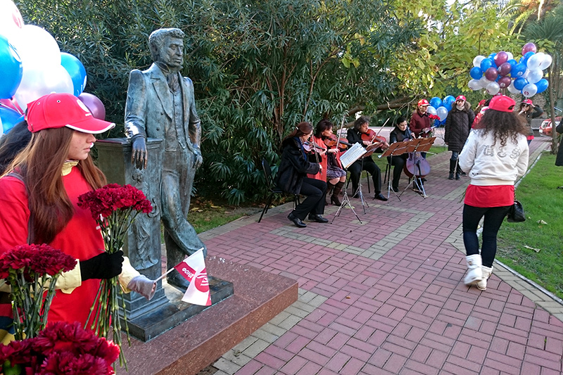В Сочи в рамках VIII Ассамблеи Русского мира состоялось возложение цветов к памятнику А. С. Пушкину, в котором приняли участие гости Ассамблеи, волонтёры, представители общественности и СМИ.Перед участниками выступила президент Российской академии образования, глава Международной ассоциации преподавателей русского языка и литературы, председатель попечительского совета фонда «Русский мир» Людмила Вербицкая, которая рассказала о всемирном значении творчества поэта. «На земле, наверное, нет мест, где бы не слышали об Александре Сергеевиче Пушкине», — сказала Людмила Вербицкая.